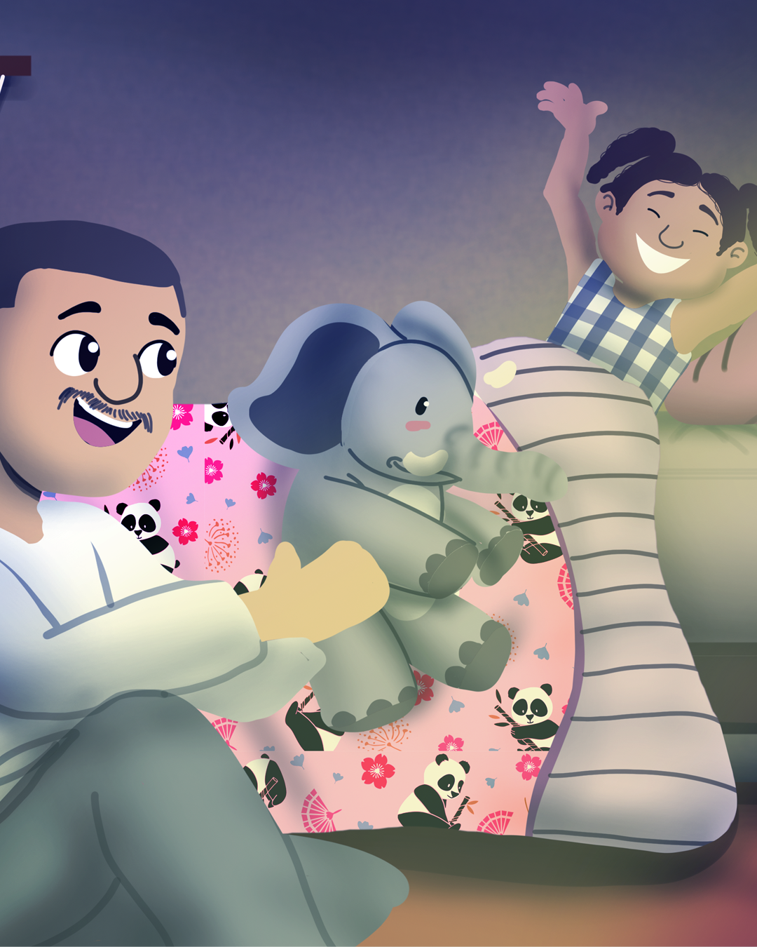 Arte feita para narrar um dos momentos mais inesquecíveis na vida de uma criança, nesse uma menina. A hora de ouvir aquela famosa historinha do Papai.